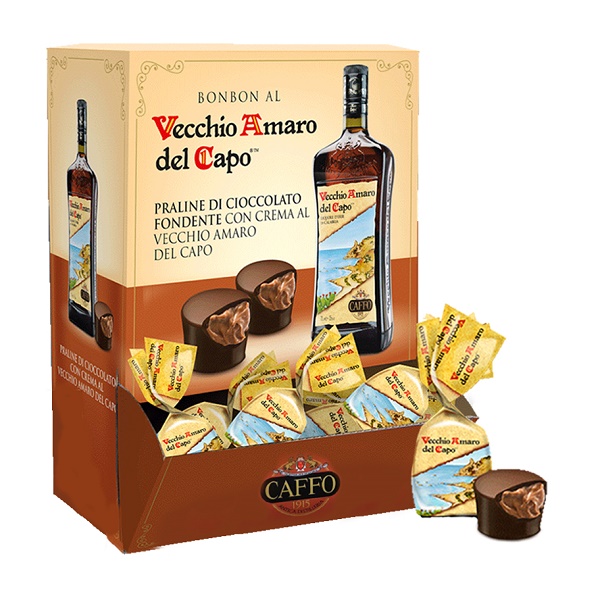 Dolci praline di finissimo cioccolato fondente che racchiudono un delizioso ripieno di crema al Vecchio Amaro del Capo